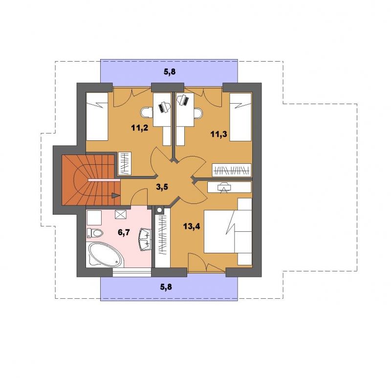 • Jantár 65/184 * je dom menšej veľkostnej kategórie so 4 obytnými miestnosťami * svojimi rozmermi uspokojí nároky 4 člennej rodiny * svojím dispozičným riešením umožňuje čiastočné alebo úplné podpivničenie * z bočnej strany domu je možné suché státie uzavrieť a vytvoriť garáž, alebo hosťovskú izbu so vstupom z obývacej izby * rodinný dom je vhodný do rovinatého terénu