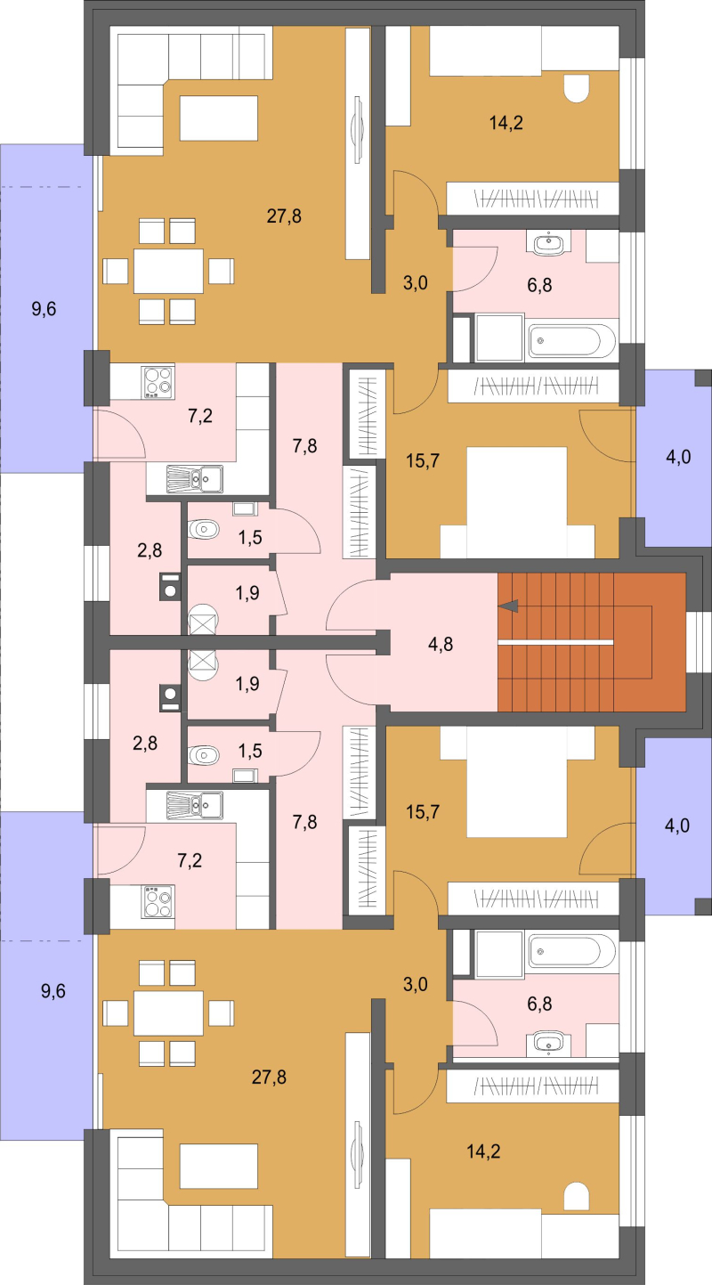 Úžitková plocha 3i.bytu - 88,7m2 Úžitková plocha 4i.bytu - 97,5m2
