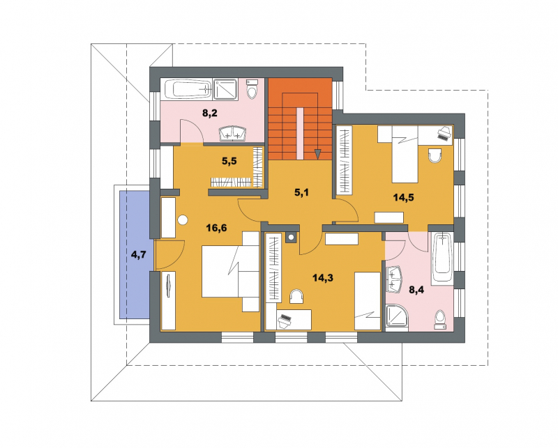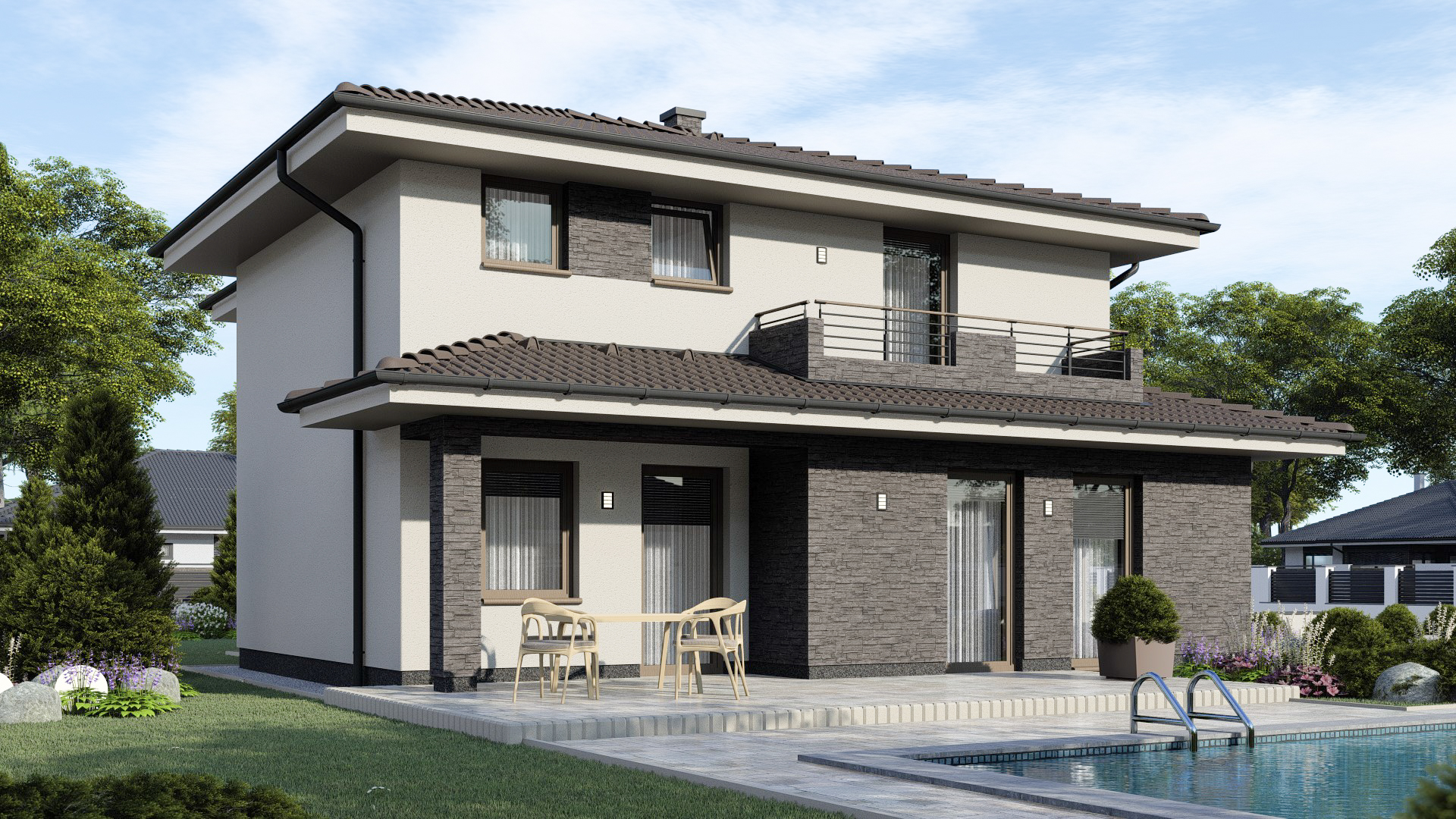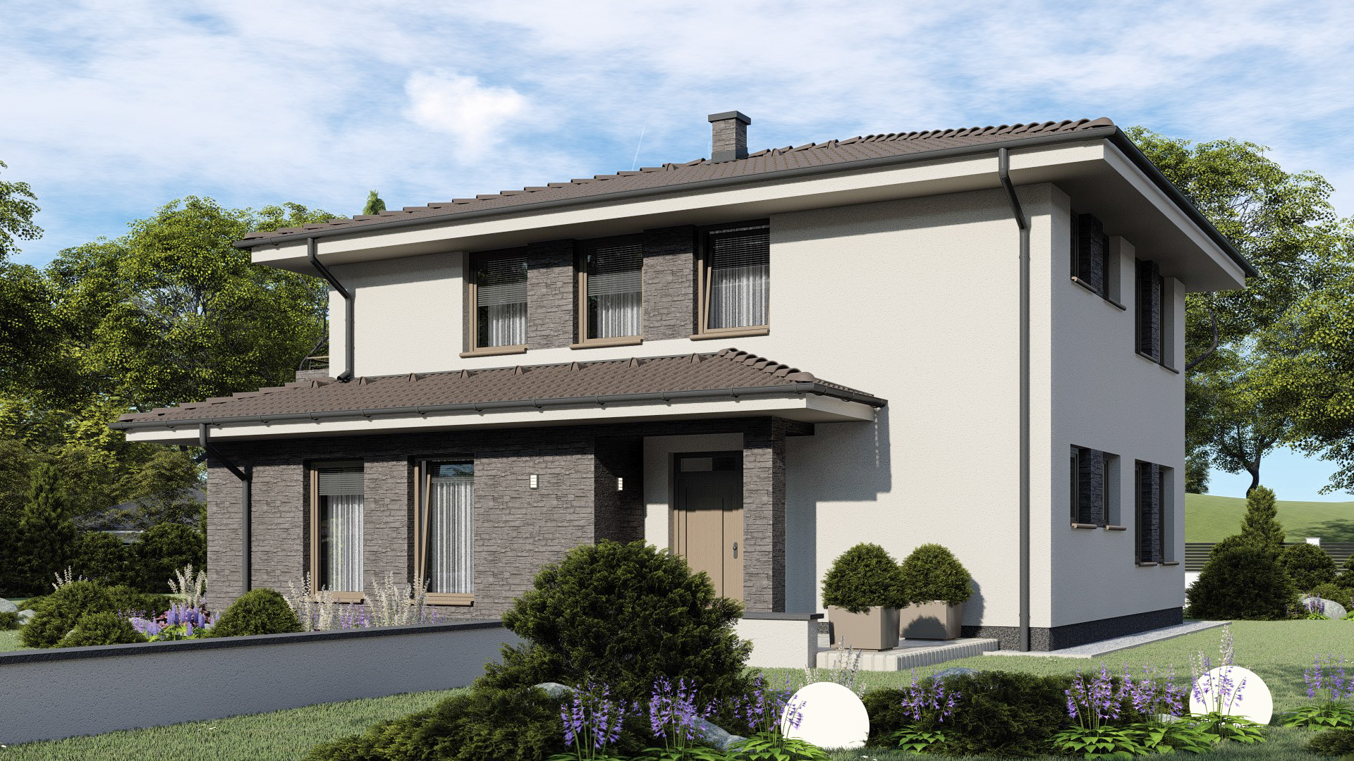 • Smaragd 102/300 * je dom strednej veľkostnej kategórie s 5 obytnými miestnosťami * svojimi rozmermi uspokojí nároky 4-5 člen-nej rodiny * dispozičné riešenie umožňuje čiastočné, alebo úplné podpivničenie rodinného domu * na zadnej fasáde domu je možné pristavať garáž, alebo dvojgaráž, prípadne doplniť technickú miestnosť * rodinný dom je vhodný do rovinatého terénu