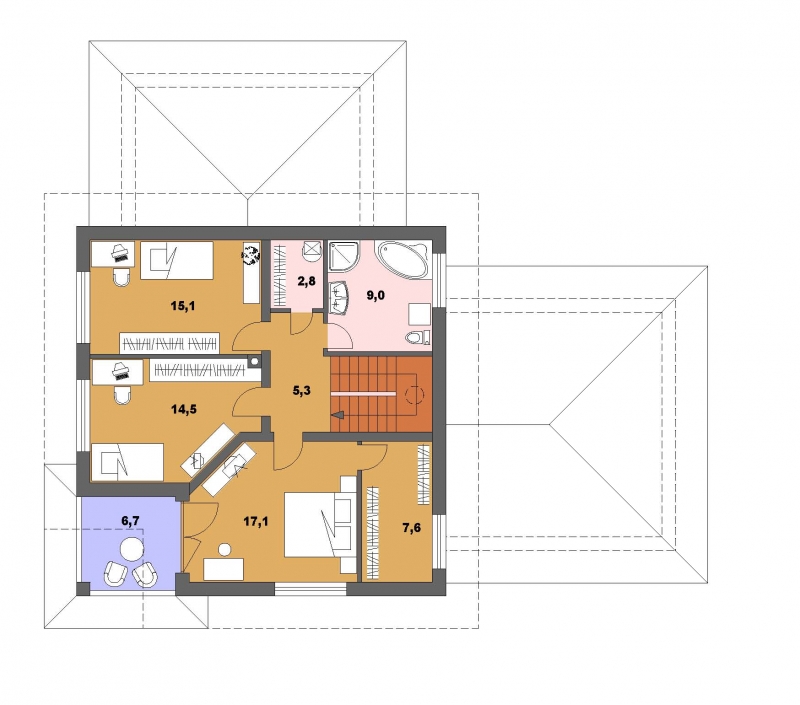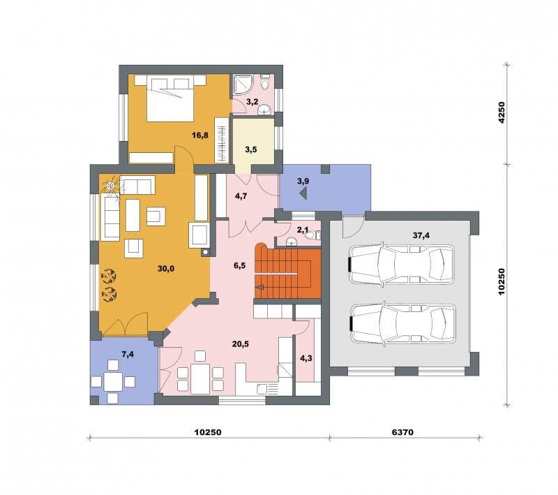 • Smaragd 116/199 * je dom väčšej veľkostnej kategórie s 5 obytnými miestnosťami * svojimi rozmermi uspokojí nároky 5-6 člennej rodiny * svojím dispozičným riešením umožňuje čiastočné alebo úplné podpivničenie * priestor dvojgaráže môže slúžiť ako ďalšia bytová jednotka * na poschodí je možné vytvoriť ešte štvrtú izbu, ktorá by sa nachádzala nad hosťovskou izbou na prízemí
