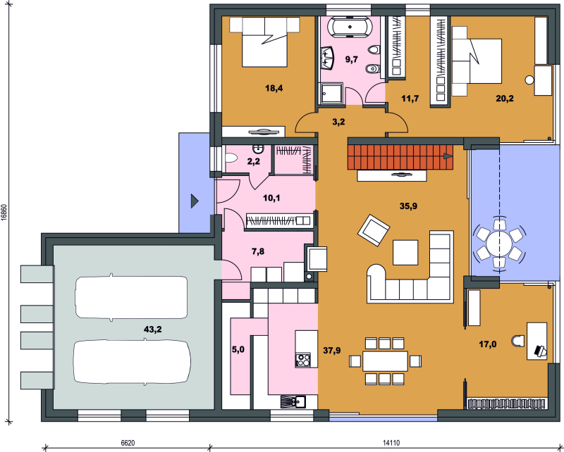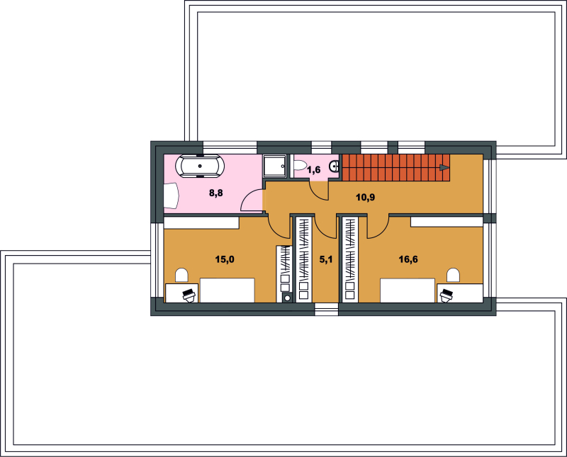 • Spinel 166/504 je dvojpodlažný moderný rodinný dom s plochou strechou.  Dom je väčšej veľkostnej kategórie s 5 obytnými miestnosťami.  Priestor dvojgaráž môže slúži aj ako izba prípadne priestor na fitness. Na poschodí je možné doplniť ešte jednu rodičovskú izbu s kúpelkou a šatníkom