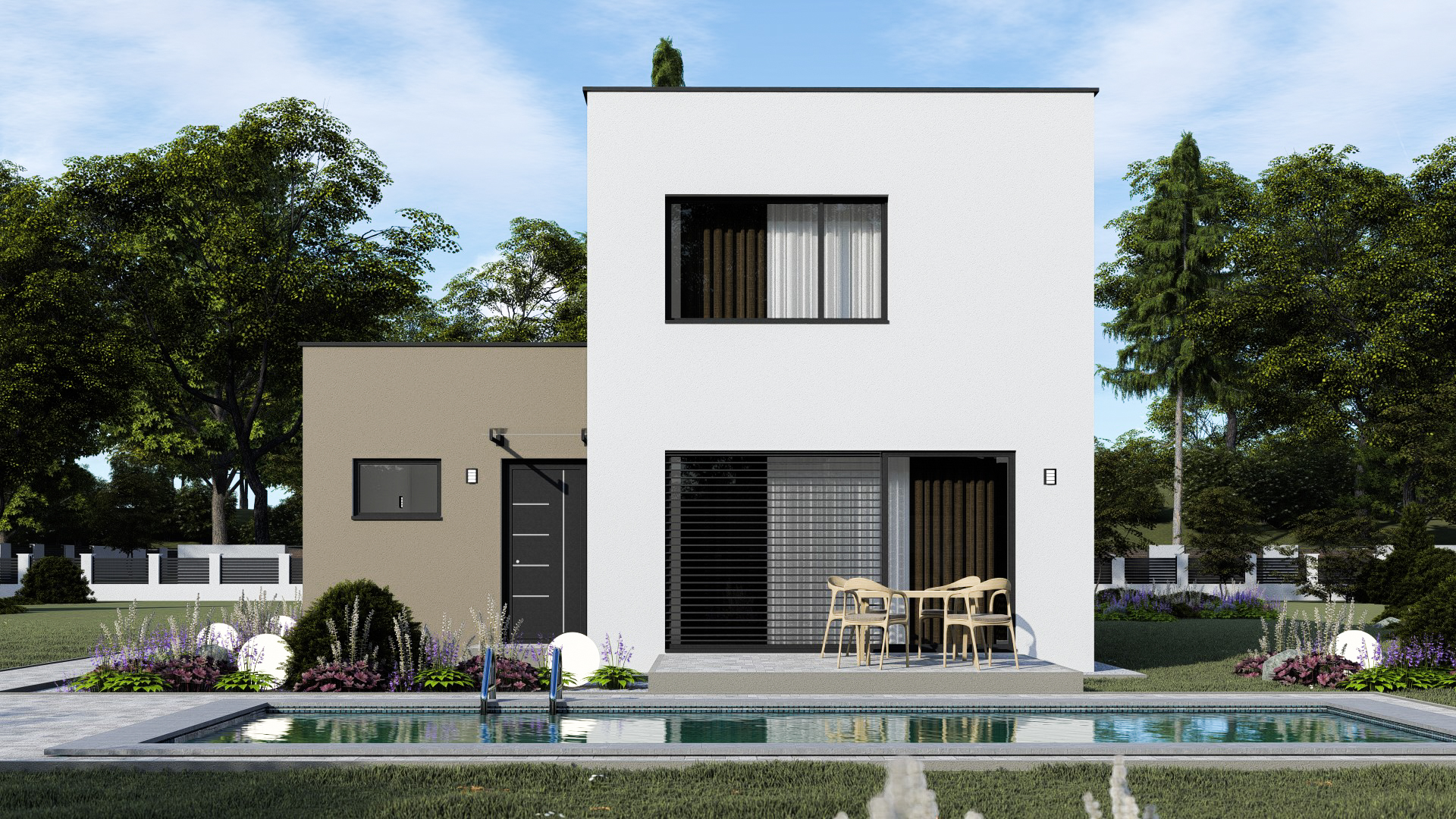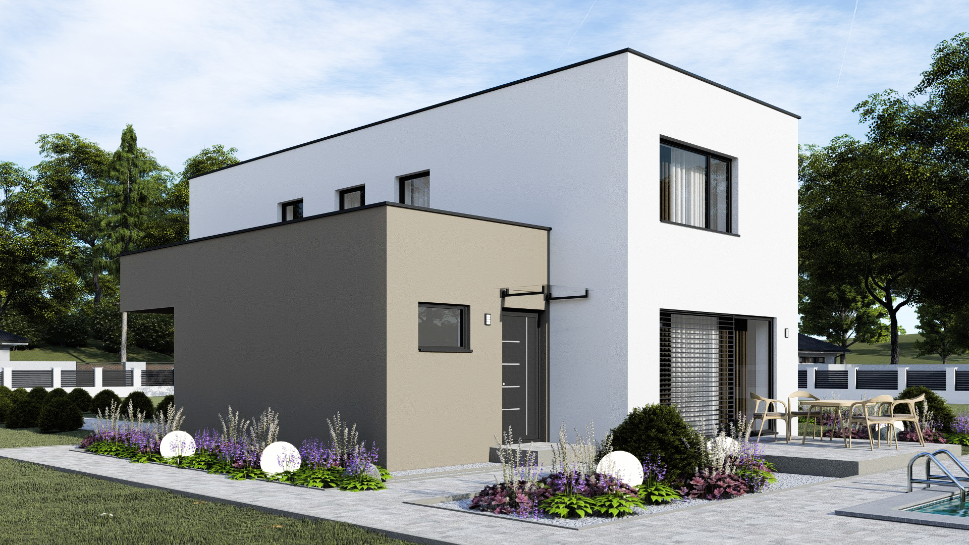 • Spinel 83/502 je dvojpodlažný moderný rodinný dom s plochou strechou.  Dom je strednej veľkostnej kategórie so 4 obytnými miestnosťami.  Garáž je možné zväčšiť na dvojgaráž, prípadne realizovať na úzku parcelu bez garáže. Z garáže môže byť aj tretia izba na prízemí