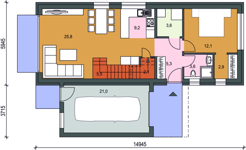 • Spinel 83/502 je dvojpodlažný moderný rodinný dom s plochou strechou.  Dom je strednej veľkostnej kategórie so 4 obytnými miestnosťami.  Garáž je možné zväčšiť na dvojgaráž, prípadne realizovať na úzku parcelu bez garáže. Z garáže môže byť aj tretia izba na prízemí