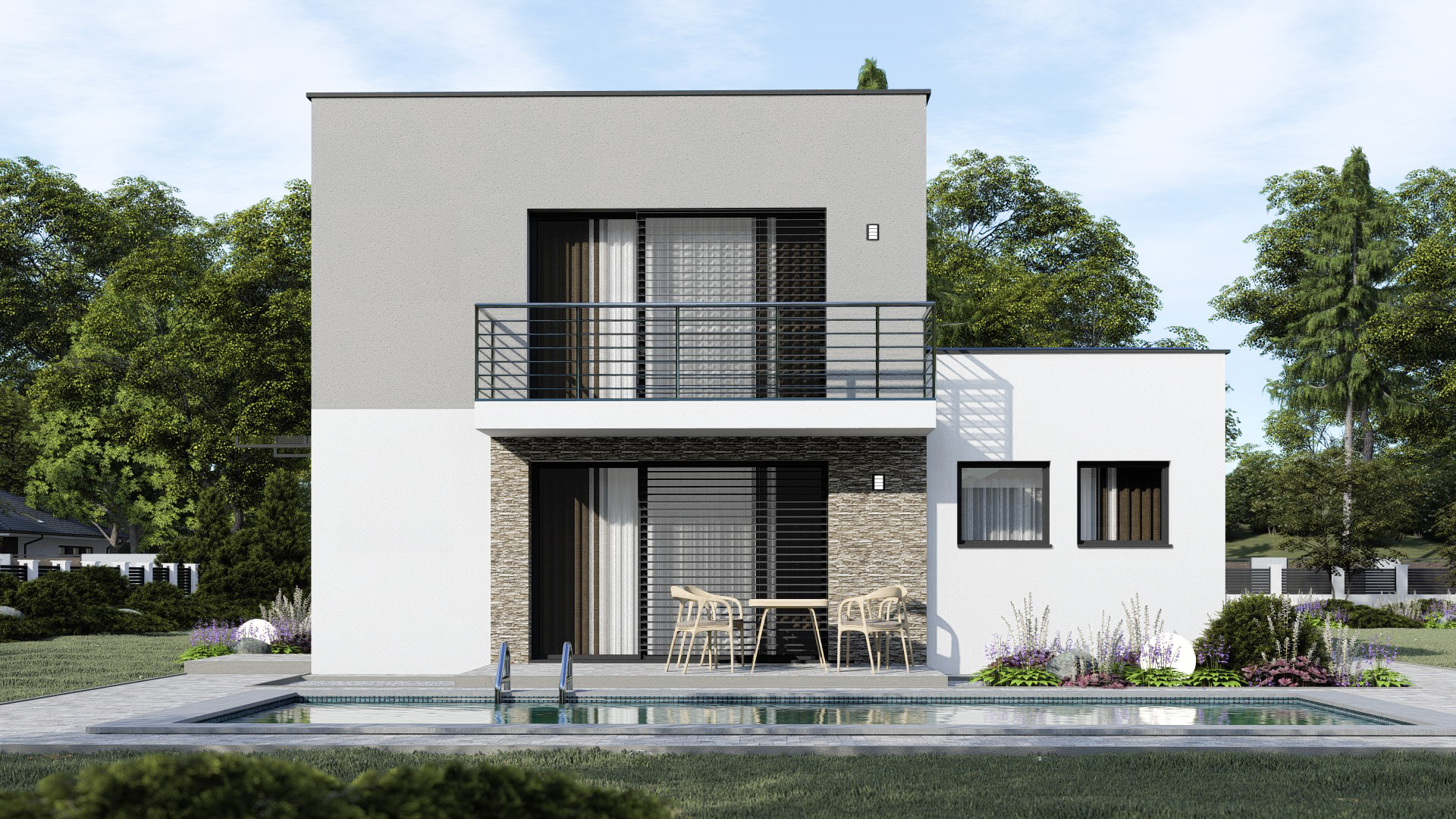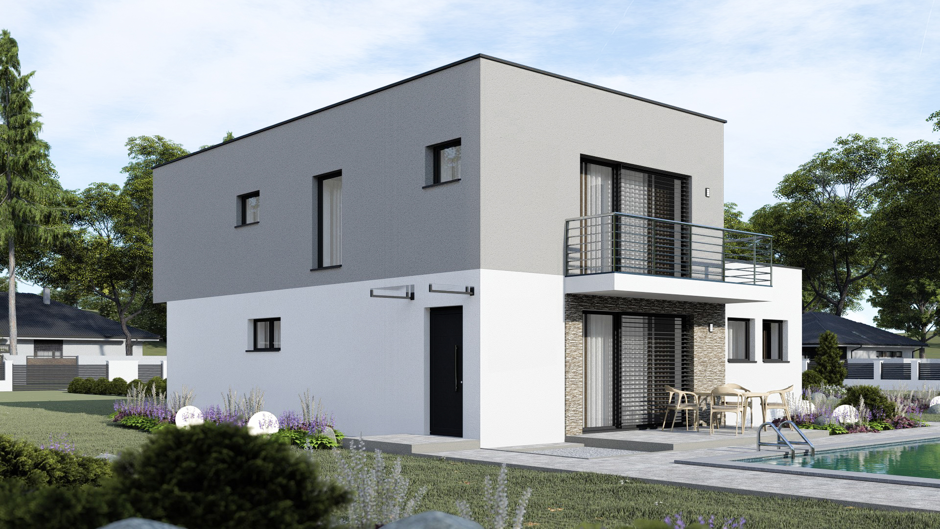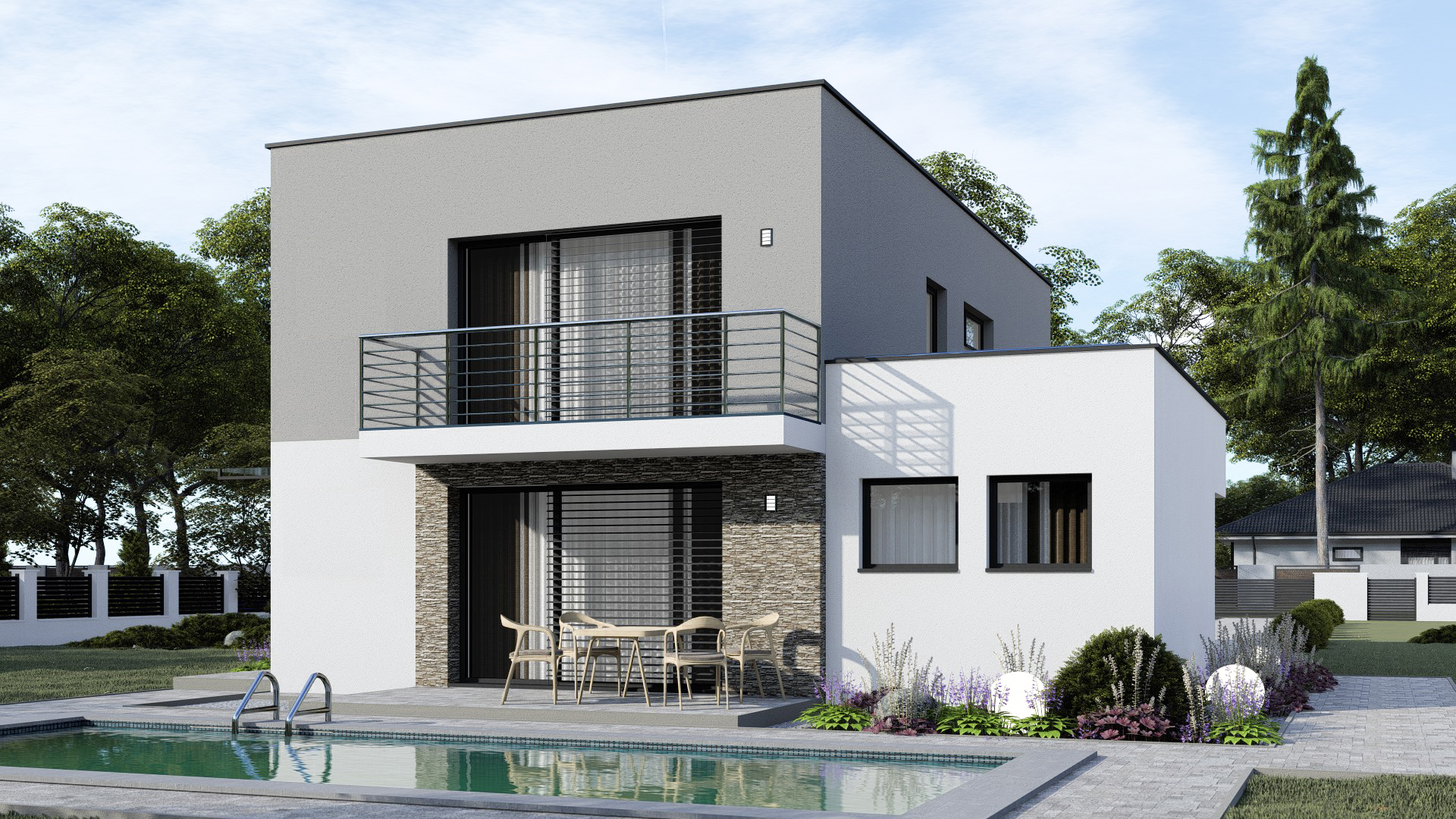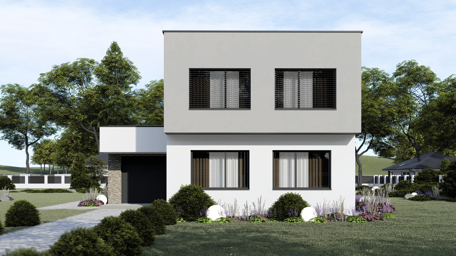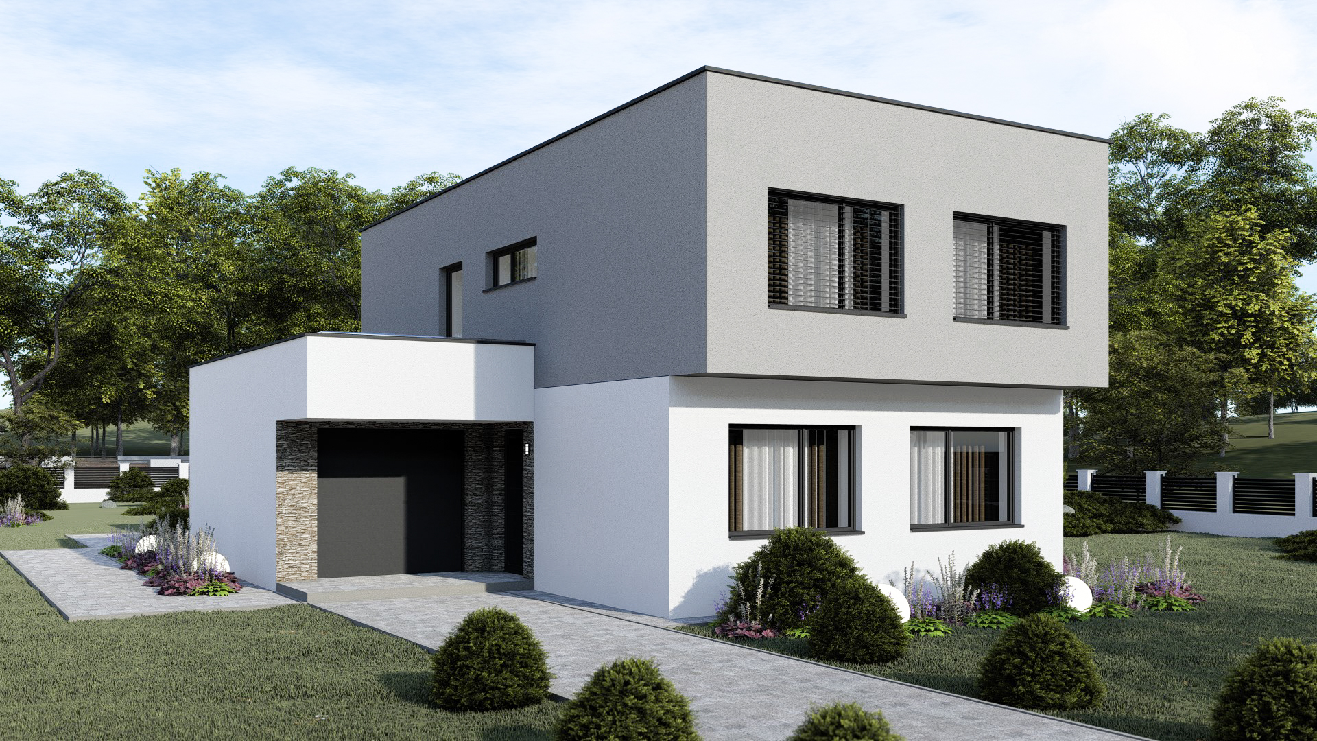 • Spinel 91/503 je dvojpodlažný moderný rodinný dom s plochou strechou.  Dom má dve samostatné bytové jednotky s tromi izbami. Dom je menšej kategórie s 2 x 3 obytnými miestnosťami.  Garáž je možné zväčšiť na dvojgaráž, prípadne realizovať na úzku parcelu bez garáže.