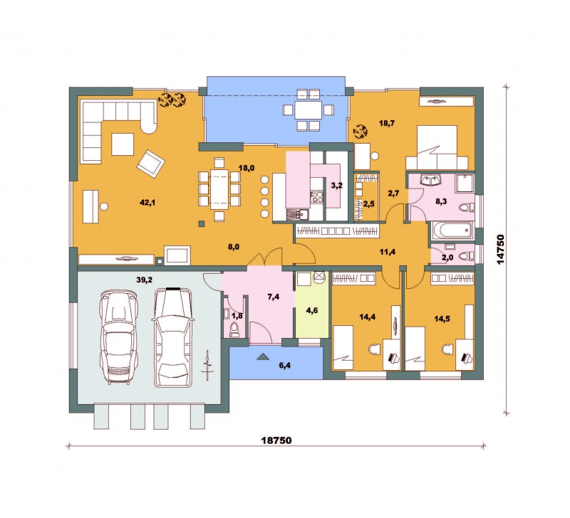 • Spinel 98/338 * je dom väčšej veľkostnej kategórie so 4 obytnými miestnosťami * svojimi rozmermi uspokojí nároky 4-5 člennej rodiny *v priestore dvojgaráže je možné vytvoriť samostatnú miestnosť a garáž, prípadne samostatnú bytovú jednotku * rodinný dom je možné čiastočne, alebo úplne podpivničiť * v zadnej časti domu je možné vytvoriť prekrytú terasu, prípadne zimnú záhradu