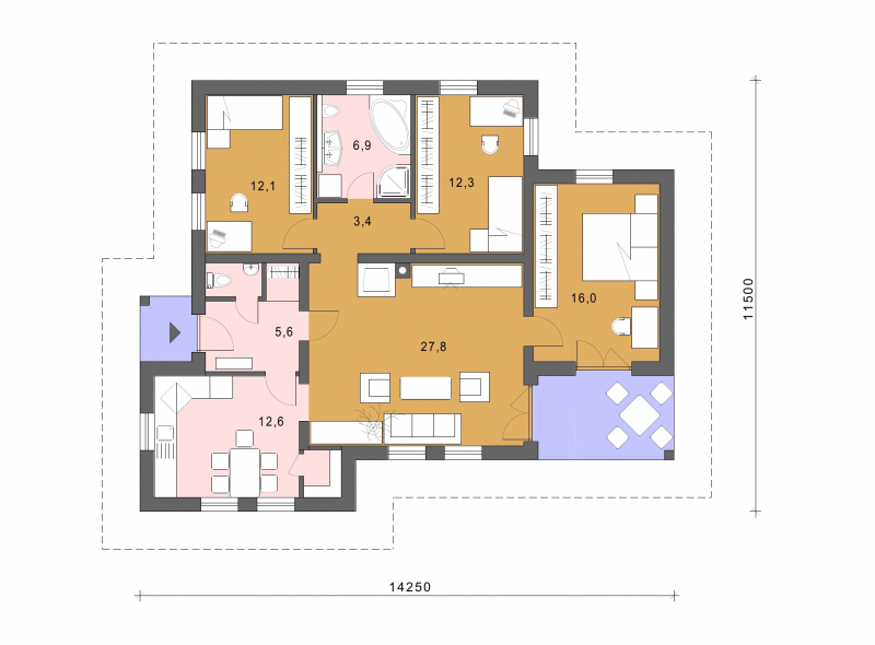 • Opál 68/153 * je dom menšej veľkostnej kategórie so 4 obytnými miestnosťami * svojimi rozmermi uspokojí nároky 4 člennej rodiny * svojím dispozičným riešením umožňuje čiastočné alebo úplné podpivničenie so schodiskom a vstupom zo záhrady * rodinný dom je vhodný na užšie parcely * presklením prekrytej terasy získame zimnú záhradu