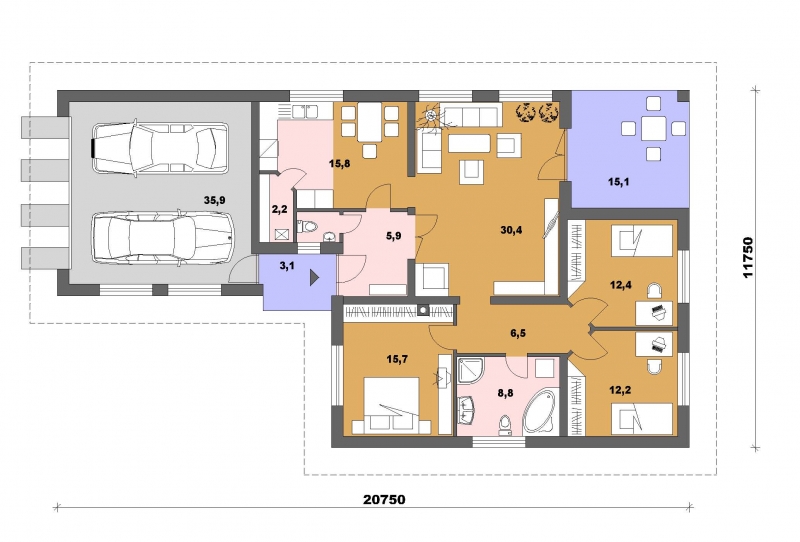 • Opál 74/209 * je dom strednej veľkostnej kategórie so 4 obytnými miestnosťami * svojimi rozmermi uspokojí nároky 4-5 člennej rodiny * rodinný dom je vhodný na užššie pozemky * presklením prekrytej terasy vytvoríme zimnú záhradu * dvojgaráž môže slúžiť aj ako samostatná bytová jednotka * dom je vhodný do rovinatého alebo mierne svahovitého terénu