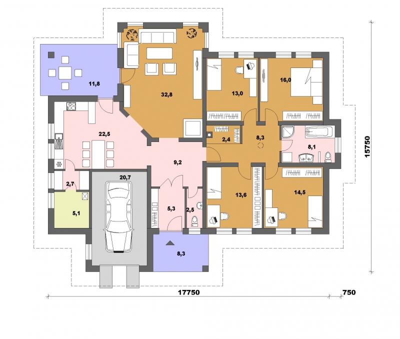 • Opál 103/257 *je dom väčšej veľkostnej kategórie s 5 obytnými miestnosťami *svojimi rozmermi uspokojí nároky4-6 člennej rodiny *garáž v rodinnom dome je možné rozšíriť namiesto komory a technickej miestnosti na dvojgaráž a zrušené miestnosti situovať za dvojgarážou *presklením prekrytej terasy vytvoríme zimnú záhradu *objekt je vhodný do rovinatého alebo mierne svahovitého terénu