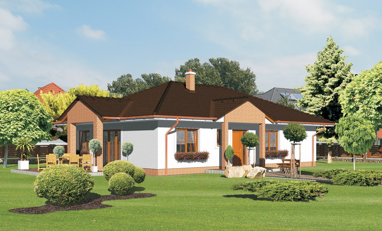 • Opál 76/193 * je dom strednej veľkostnej kategórie s 5 obytnými miestnosťami * svojimi rozmermi uspokojí nároky 5 člennej rodiny * svojím dispozičným riešením umožňuje podpivničenie domu so schodiskom a vstupom zo záhrady * rodinný dom je vhodný na rovinatý terén * presklením prekrytej terasy vytvoríme zimnú záhradu * izba pri vstupe môže slúžiť ako sklad alebo hosťovská izba