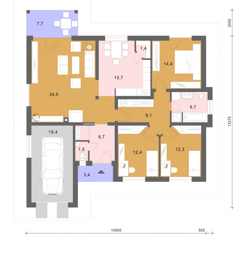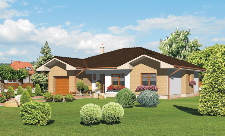 • Opál 77/234 * je dom strednej veľkostnej kategórie s 4 obytnými miestnosťami * svojimi rozmermi uspokojí nároky 4 člennej rodiny * z garáže môže vzniknúť hosťovská miestnosť, alebo pracovňa so vstupom z chodby * z bočnej strany domu je možné pristavať garáž, alebo dvojgaráž * uzavretím prekrytej terasy vytvoríme zimnú záhradu * rodinný dom je vhodný do rovinatého terénu