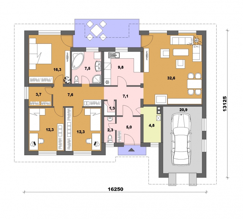 • Opál 77/254 * je dom strednej veľkostnej kategórie so 4 obytnými miestnosťami * svojimi rozmermi uspokojí nároky 4 člennejrodiny *priestor garáže a technickej miestnosti môže slúžiť ako druhá bytová jednotka, pričom garáž je možné postaviť z bočnej stranydomu* objekt je možné čiastočne, alebo úplne podpivničiť so schodiskom umiestneným zo záhrady * dom je vhodný do rovinatého terénu