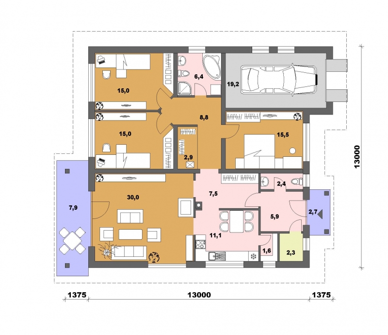 • Opál 78/255 * je dom strednej veľkostnej kategórie so 4 obytnými miestnosťami *svojimi rozmermi uspokojí nároky 4 člennej rodiny *priestor garáže môže slúžiť ako hosťovská izba, alebo technická miestnosť, pričom garáž je možné postaviť z bočnej strany domu * prekrytú terasu je možno zväčšiť a presklením vytvoríť zimnú záhradu * rodinný dom je vhodný do rovinatého terénu