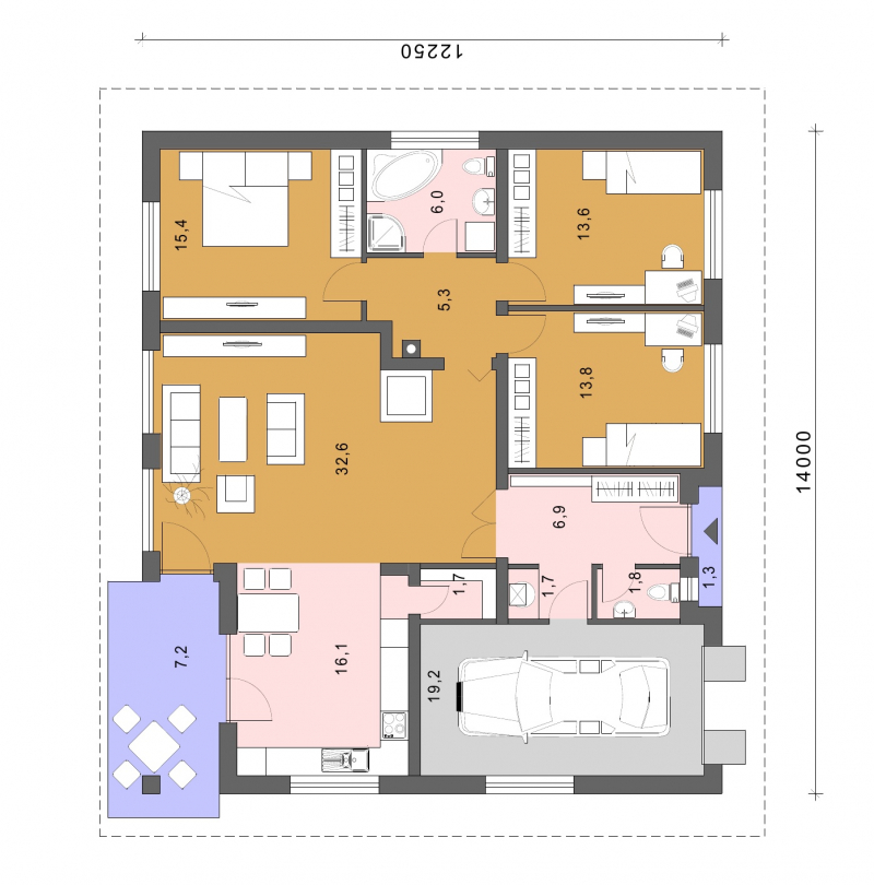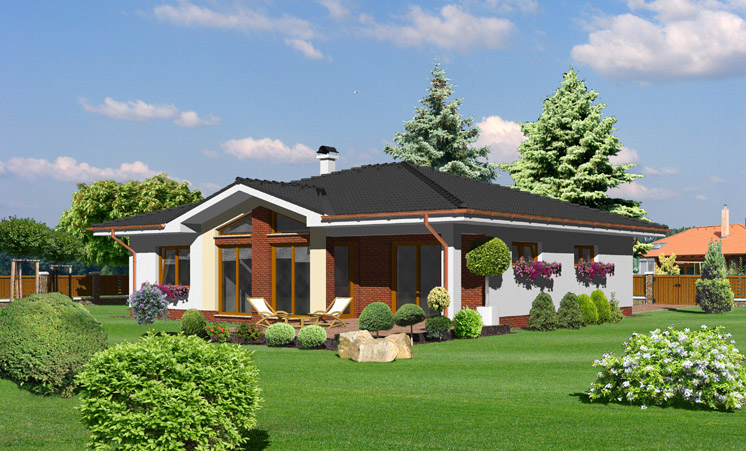 • Opál 80/274 * je dom strednej veľkostnej kategórie so 4 obytnými miestnosťami * svojimi rozmermi uspokojí nároky 4 člennej rodiny * garáž v objekte môže byť prerobená na hosťovskú izbu alebo pracovňu * presklením prekrytej terasy vytvoríme zimnú záhradu * dom je možné čiastočne alebo úplne podpivničiť so vstupom do suterénu zo záhrady * rodinný dom je vhodný do rovinatého terénu