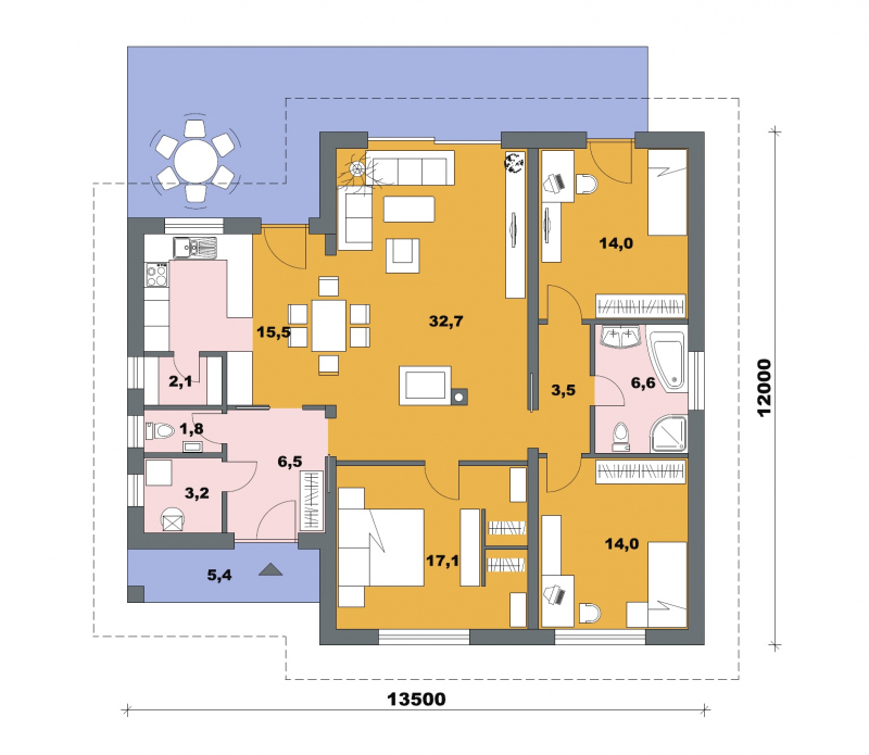 • Opál 81/324 je dom strednej veľkostnej kategórie so 4 obytnými miestnosťami svojimi rozmermi uspokojí nároky 4-5 člennej rodiny * technickú miestnosť a chodbu je možné zväčšiť na úkor závetria krb s komínom je možné presunúť k nosnej stene domu dom je vhodný do rovinatého, prípadne mierne svahovitého terénu zmenou strechy je možné vytvoriť prekrytú terasu pri kuchyni