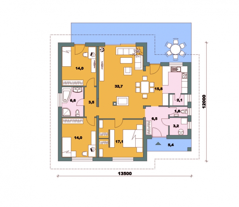 • Opál 81/324 je dom strednej veľkostnej kategórie so 4 obytnými miestnosťami svojimi rozmermi uspokojí nároky 4-5 člennej rodiny * technickú miestnosť a chodbu je možné zväčšiť na úkor závetria krb s komínom je možné presunúť k nosnej stene domu dom je vhodný do rovinatého, prípadne mierne svahovitého terénu zmenou strechy je možné vytvoriť prekrytú terasu pri kuchyni