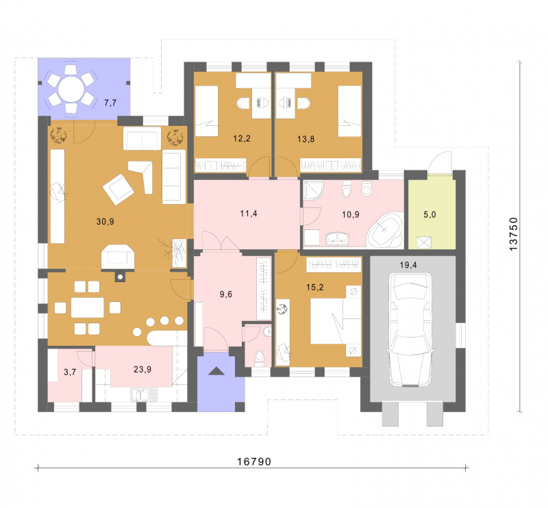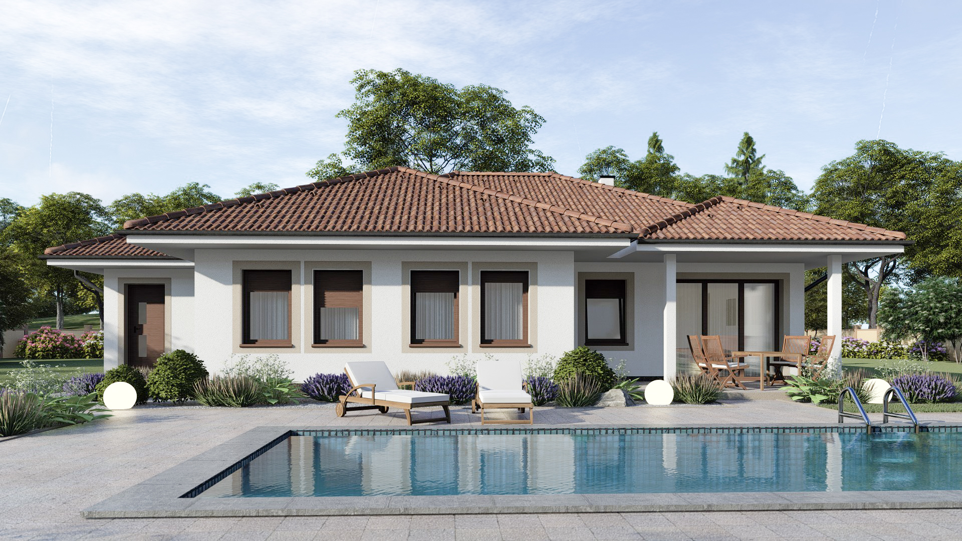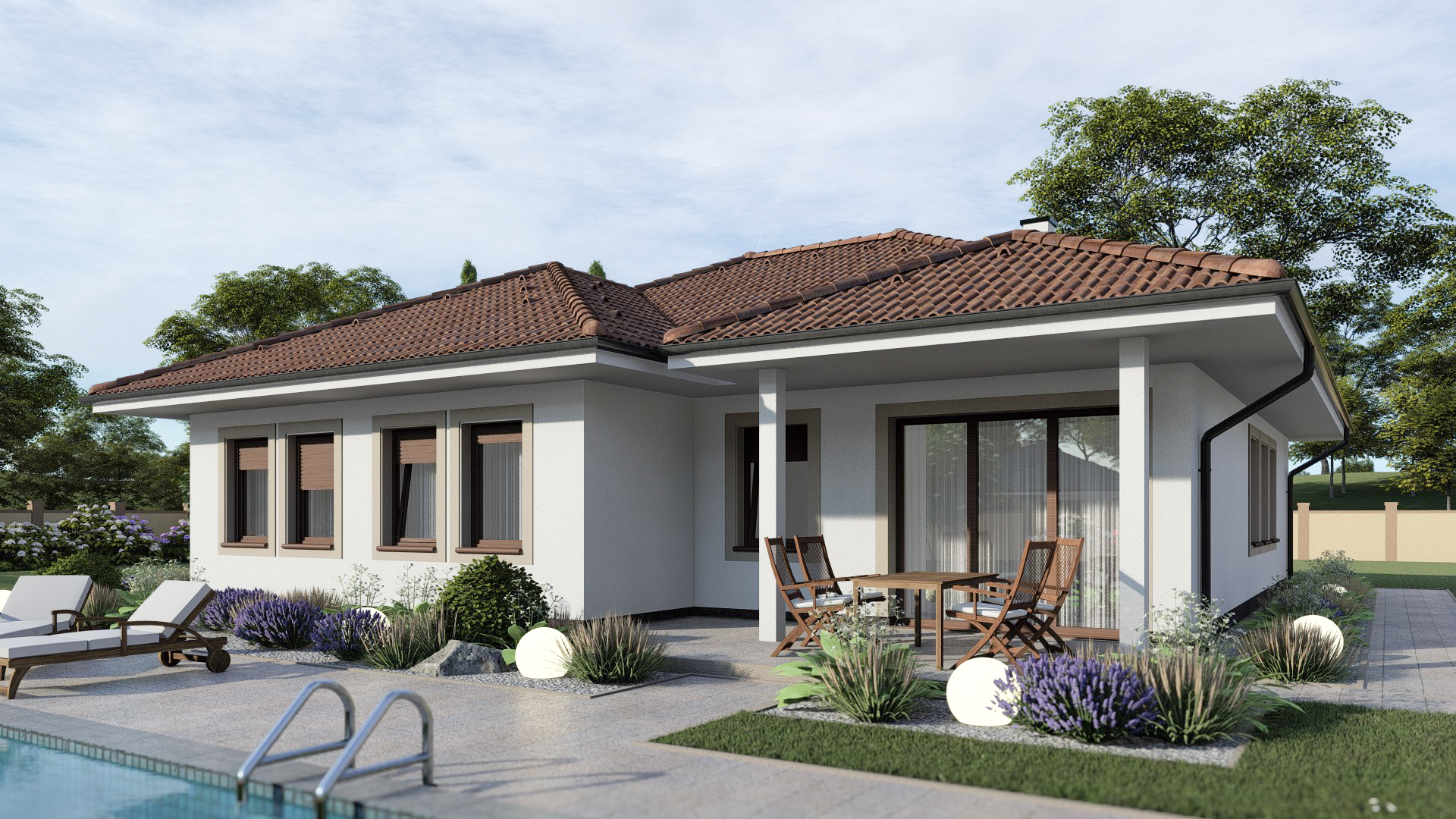 • Opál 84/90 * je dom väčšej veľkostnej kategórie vhodný do jednopodlažnej okolitej zástavby * rodinný dom má 4 obytné miestnosti, s ktorými uspokojí nároky 4-5 člennej rodiny *povalový priestor je možné využiť na skladovanie * prekrytú terasu je možné preskliť a vytvoriť zimnú záhradu * rodinný dom je vhodný do rovinatého terénu