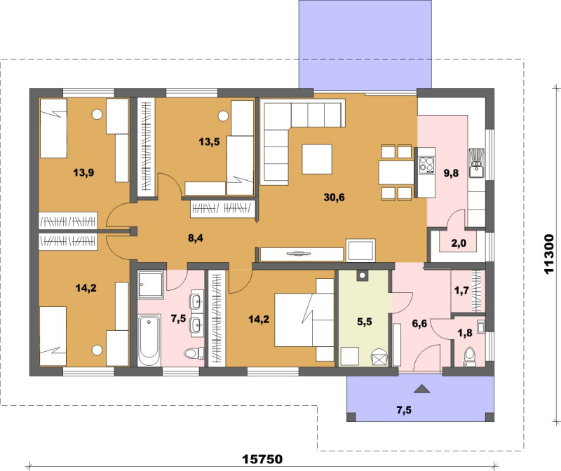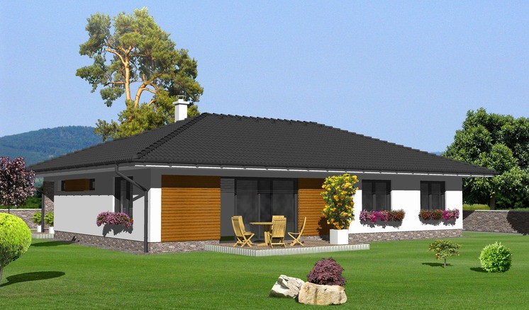 • Opál 86/379 je päťizbový prízemný rodinný dom typu bungalov. Možná prístavba garáže alebo dvojgaráže.