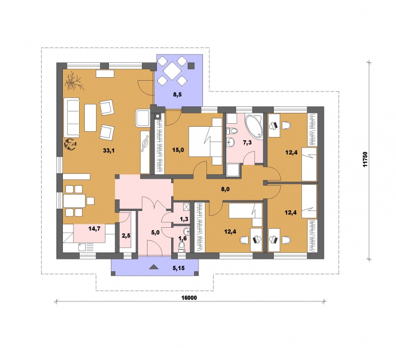 • Opál 88/194 * je dom strednej veľkostnej kategórie s 5 obytnými miestnosťami * svojimi rozmermi uspokojí nároky 5 člennej rodiny * presunutím WC a šatníka vytvoríme miesto na schodisko vedúce do suterénu alebo podkrovia* rodinný dom je vhodný na rovinatý alebo mierne svahovitý terén * presklením prekrytej terasy vytvoríme zimnú záhradu