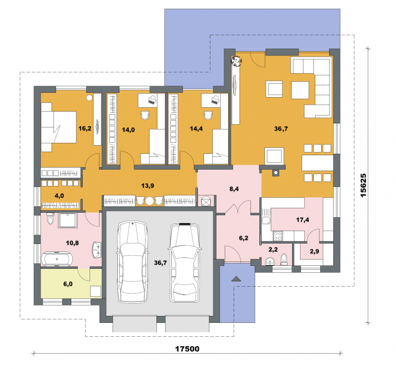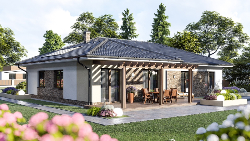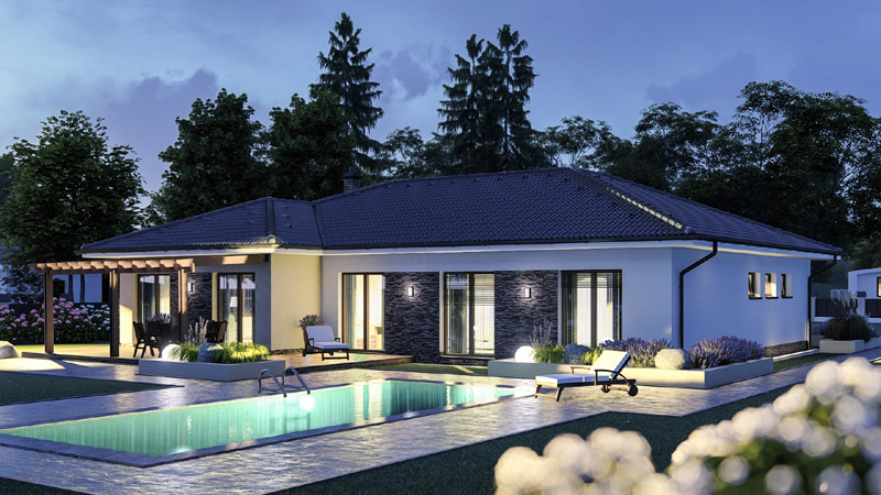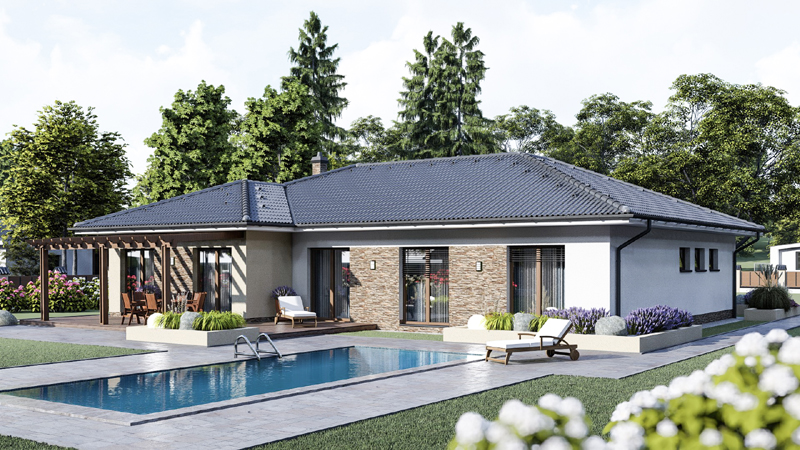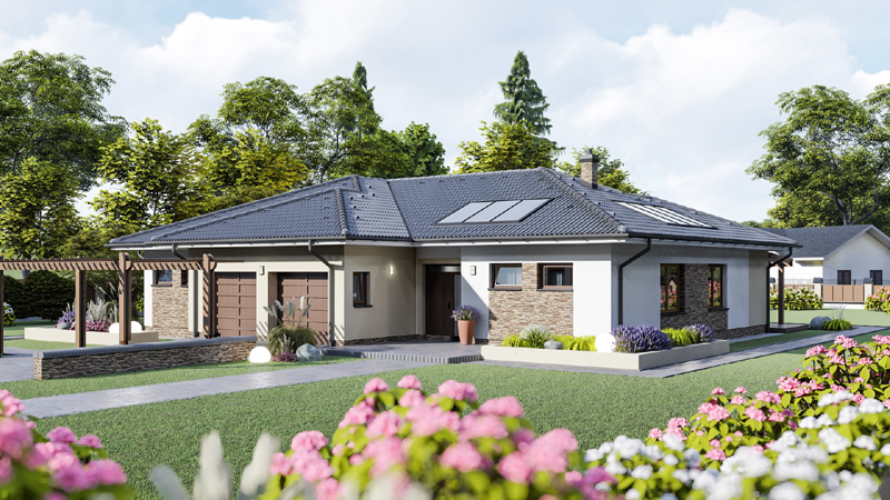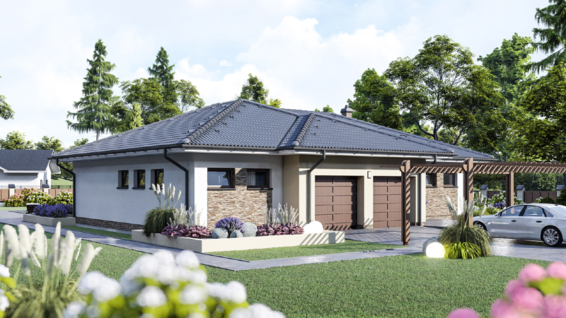 • Opál 90/295 * je dom väčšej veľkostnej kategórie so 4 obytnými miestnosťami * svojimi rozmermi uspokojí nároky 4-5 člennej rodiny* objekt je možné čiastočne, alebo úplne podpivničiť so vstupom do suterénu zo záhrady * dvojgaráž na prízemí môže slúžiť ako ďalšia izba v dome, alebo ako kancelária * rodinný dom je vhodný do rovinatého, alebo mierne svahovitého terénu