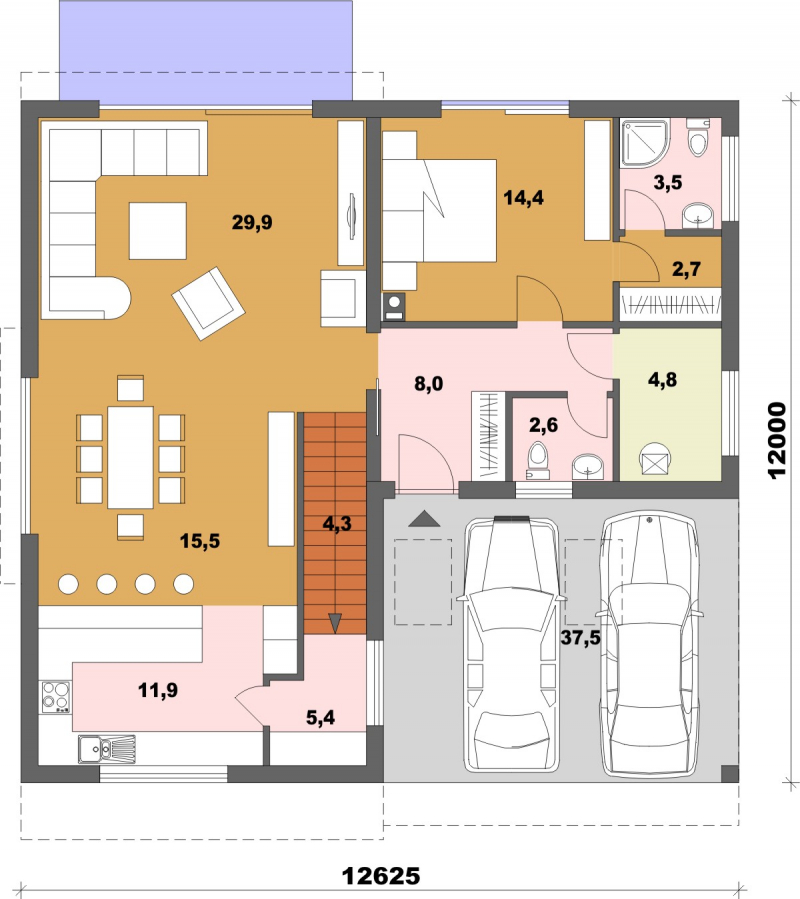 • Spinel 131/376 je dvojpodlažný moderný rodinný dom s piatimi obytnými miestnosťami a prestrešeným státím pre autá. Z bočnej strany je možné pristavať garáž.