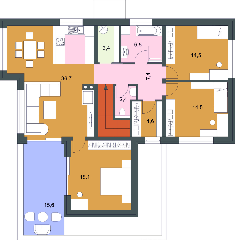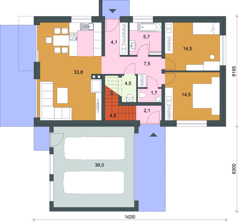 • Spinel 144/505 je dvojpodlažný moderný rodinný dom s plochou strechou.  Dom má dve samostatné bytové jednotky s tromi izbami na prízemí a 4 izbami na poschodí. Dom je strednej kategórie so 7 obytnými miestnosťami.