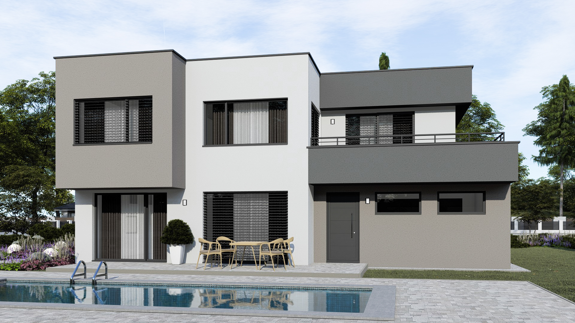 • Spinel 144/505 je dvojpodlažný moderný rodinný dom s plochou strechou.  Dom má dve samostatné bytové jednotky s tromi izbami na prízemí a 4 izbami na poschodí. Dom je strednej kategórie so 7 obytnými miestnosťami.